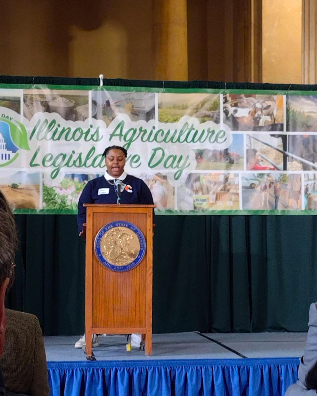 On March 24, 2026, more than 600 FFA members descended on Springfield for Illinois Agriculture Legislative Day. This annual advocacy campaign includes youth engaged in agricultural education distributing local agricultural products to elected officials and sharing their experiences. A select number of young people were asked to give a speech, including GCYC Urban Farmer Apprenticeship alum, and current GCYC Urban Agriculture Program Instructor, Sanaa Ragsdale. Read the transcript of Sanaa’s speech below: